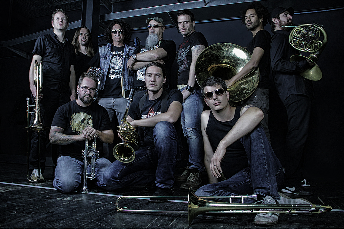 Zehn Musiker. Sieben Bläser, ein Sänger, ein Drummer und ein Pianist – Metal wie du es noch nie gehört hast.